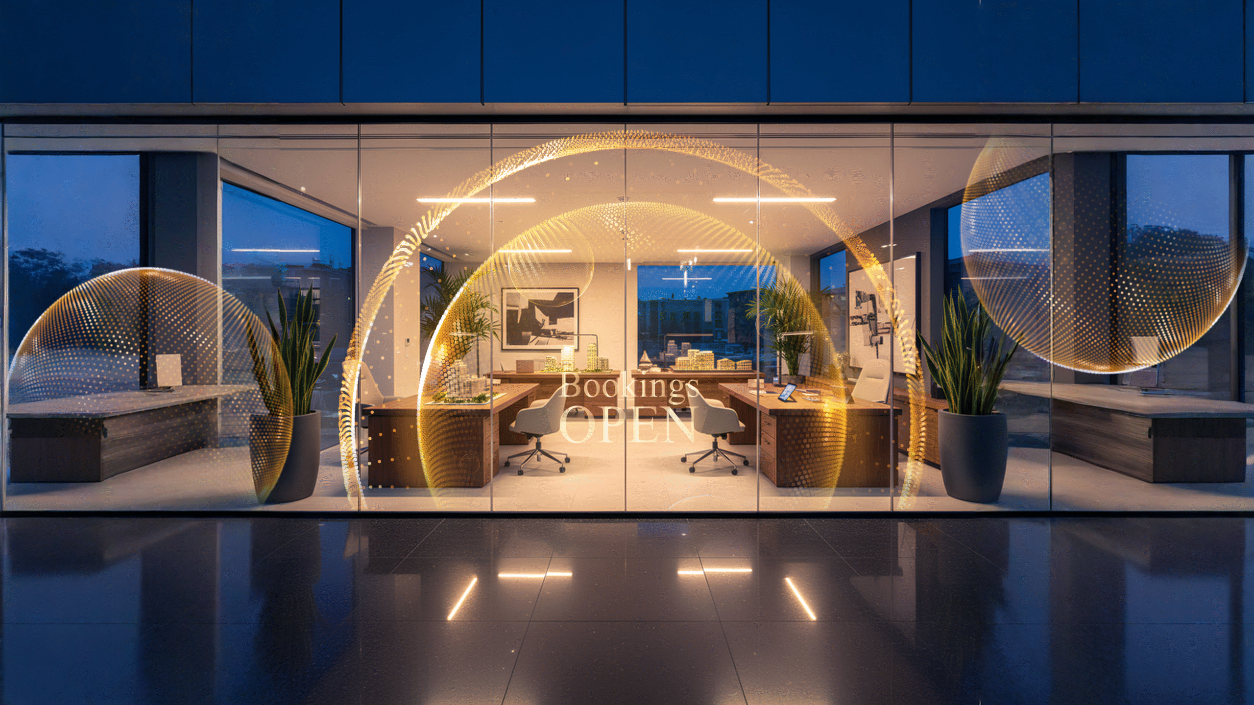 Corporate offices gain striking digital displays on glass through Holopixel while maintaining a clean, professional environment.